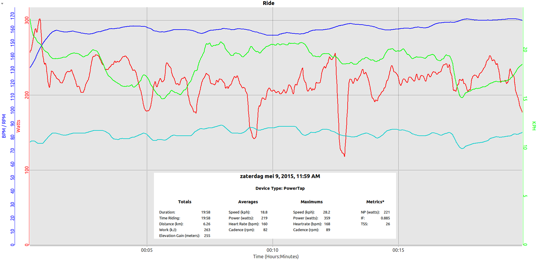 Aangezien ik inmiddels bijna een jaar met een vermogensmeter rondrijd weet ik wel ongeveer wat ik moet kunnen in die tijdrit, een gemiddelde boven 290Watt, heel misschien net boven de 300Watt moet mogelijk zijn.